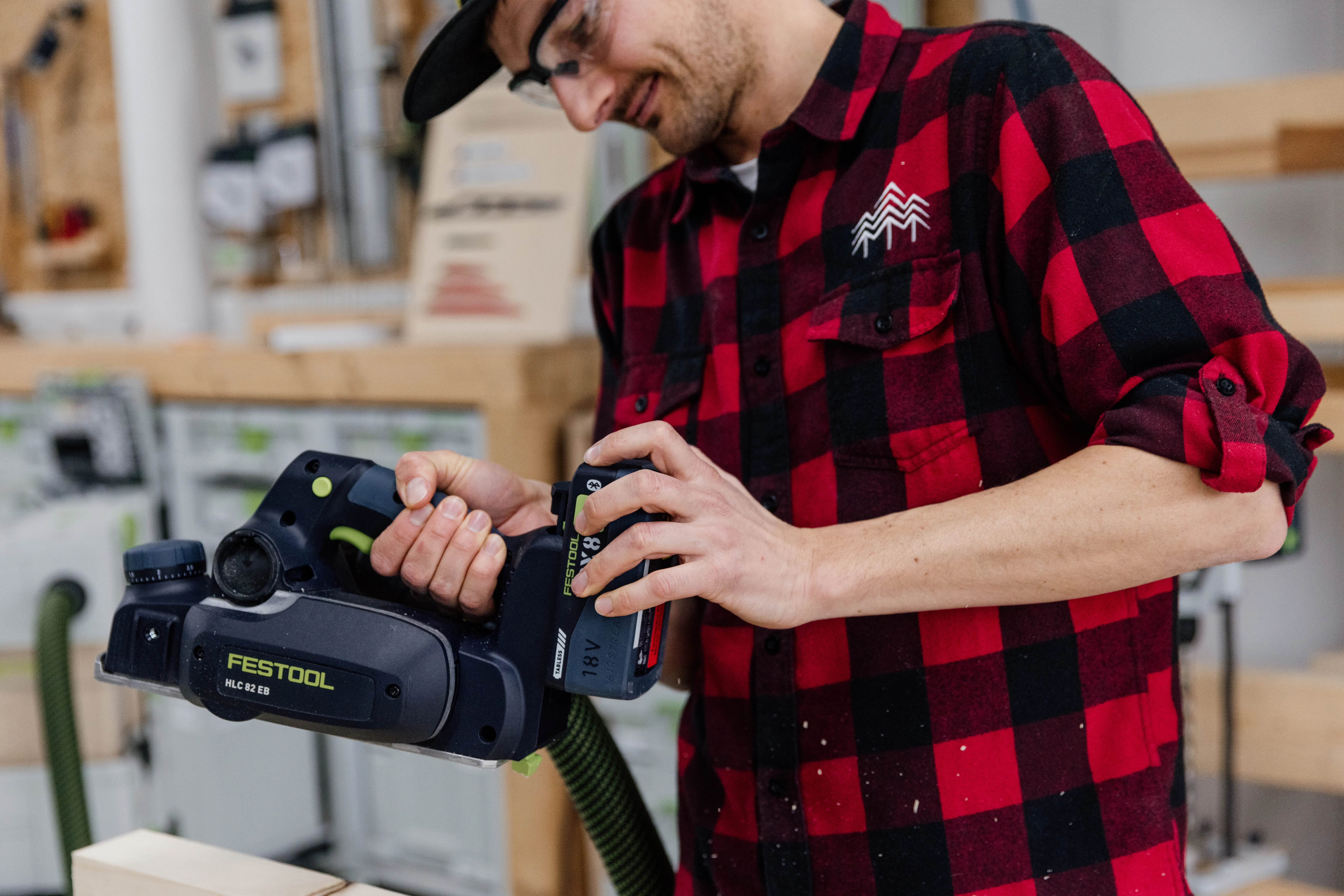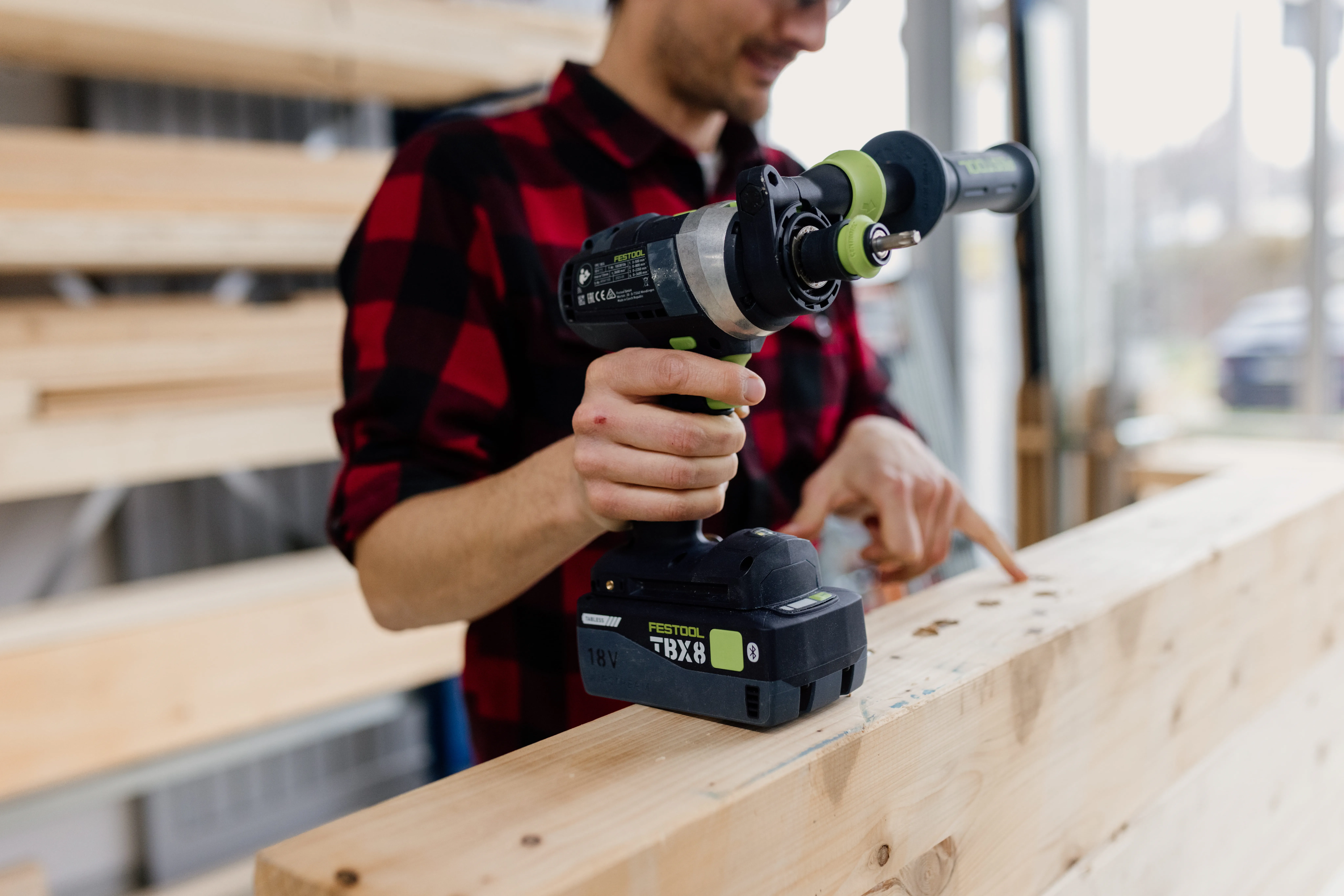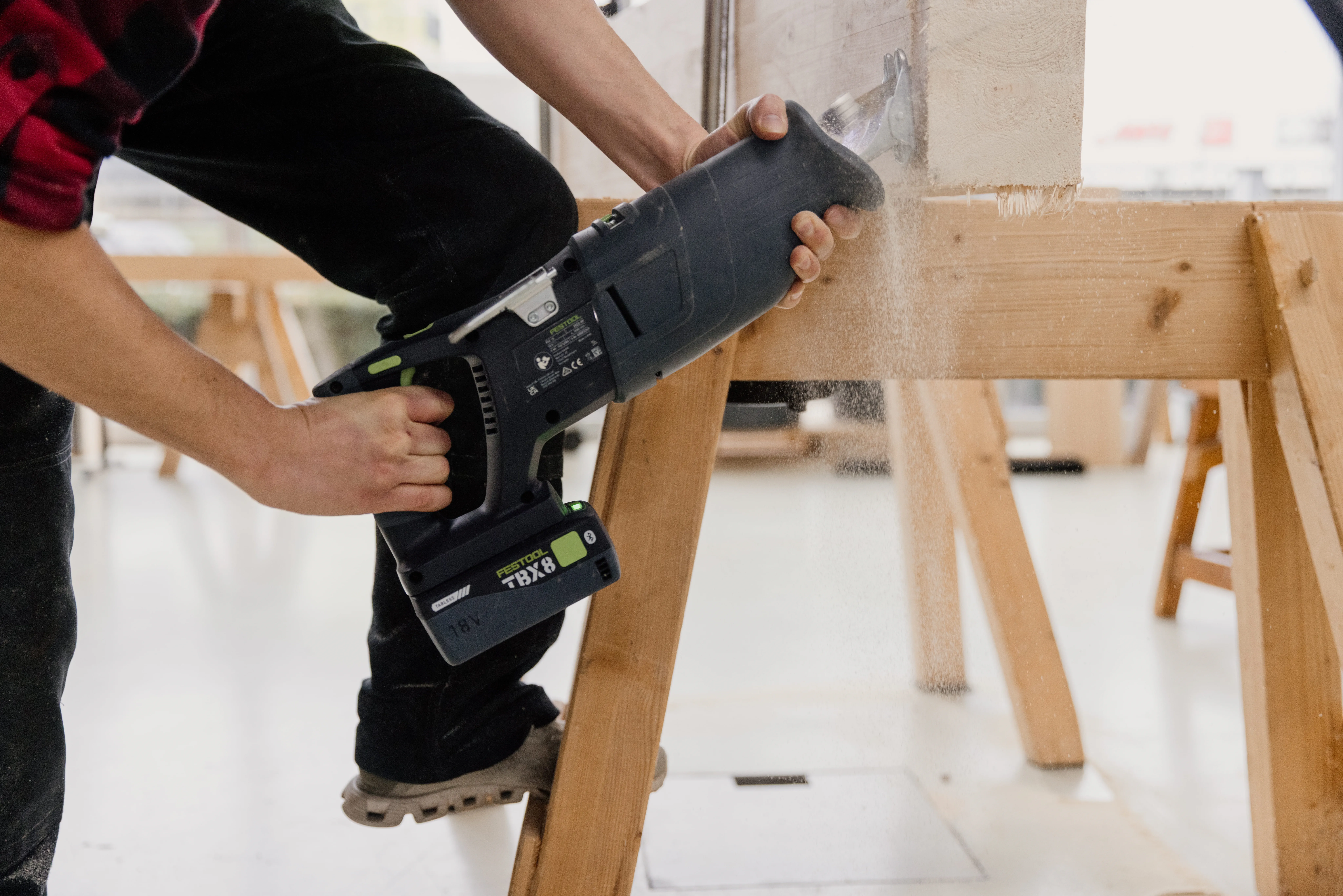 Alexander: Ja und ich muss sagen, das hat richtig Spaß gemacht! Obwohl die Unterschiede zwischen den beiden Akkus größer sind als ich zunächst gedacht habe. Was nicht nur an der gefühlten Leistungsabgabe liegt, sondern auch daran, wie gut sie zu den verschiedenen Maschinentypen passen. Während die Säbelsäge und die Handkreissäge und auch der Akku-Hobel am besten mit dem großen TBX 8 am besten funktionieren, hatte ich beim Schrauben lieber den kleineren und kompakteren TBX 4 an der Maschine. Was auch Sinn macht: Der große Akku stellt die großen Leistungsmengen und Kapazitäten bei den energieintensiven Anwendungen bereit und die Maschine ruft sie entsprechend ab und bei weniger intensiven Anwendungen reicht der kleinere TBX4 locker aus und spielt gleichzeitig seinen Handling- und Gewichtsvorteil aus.