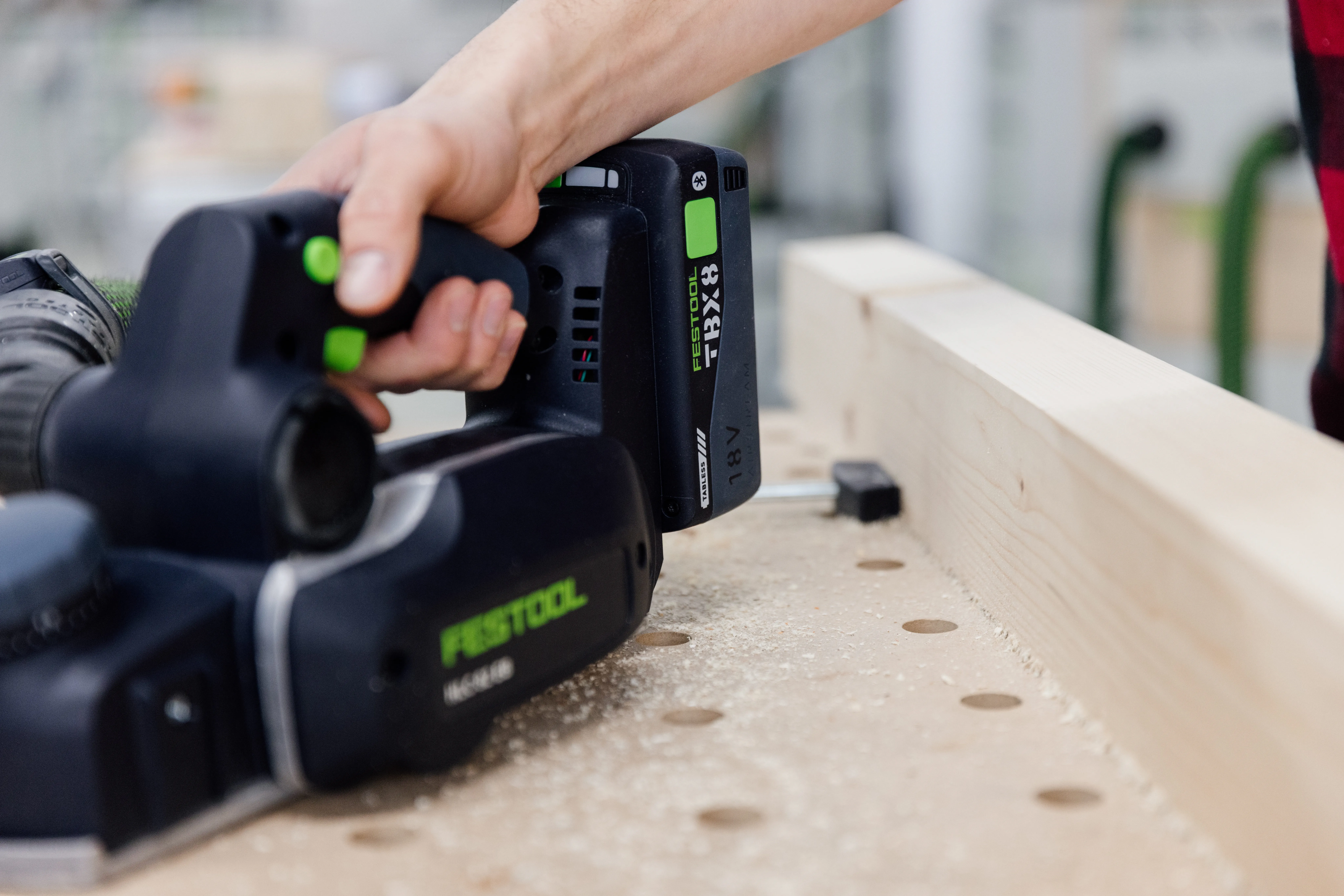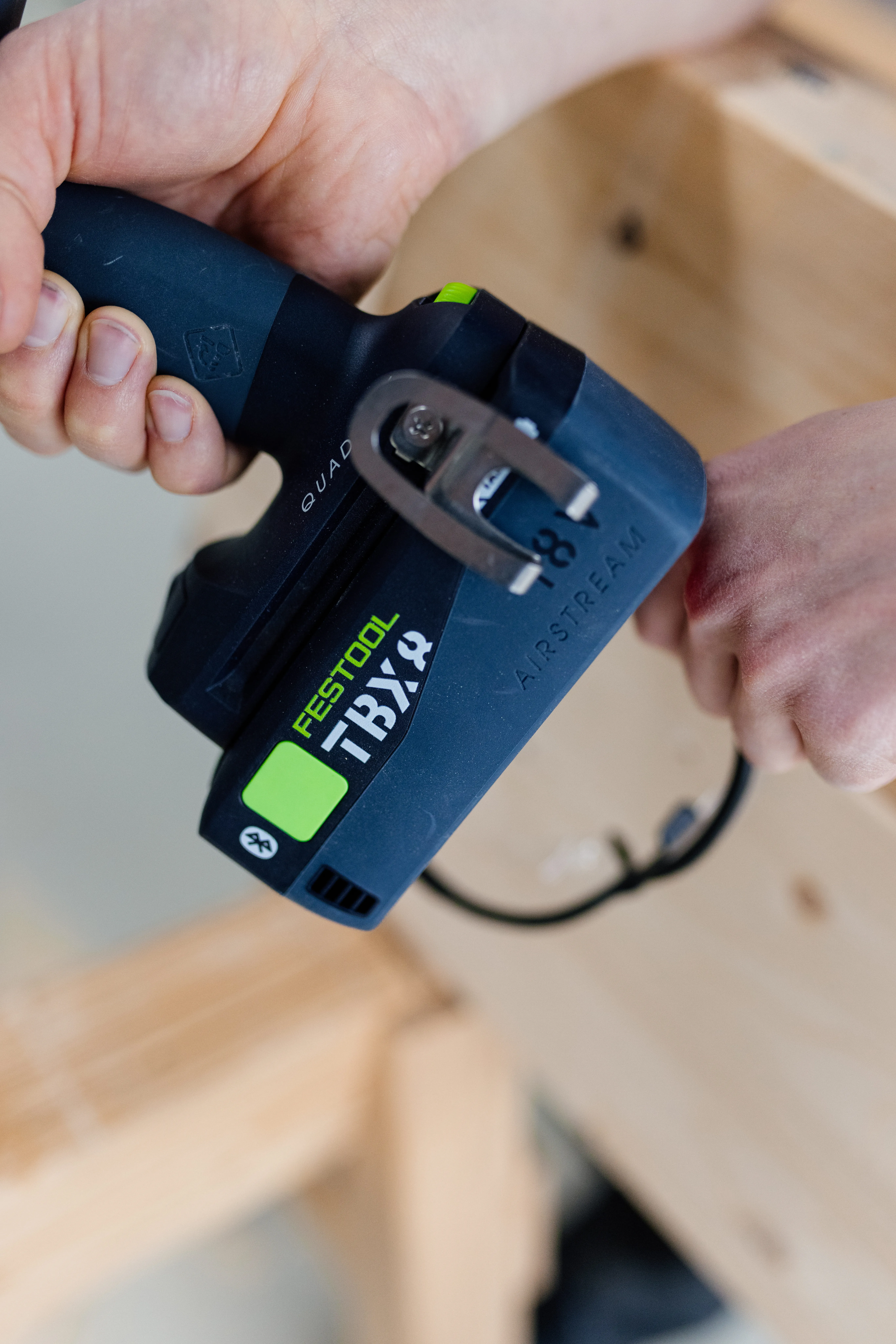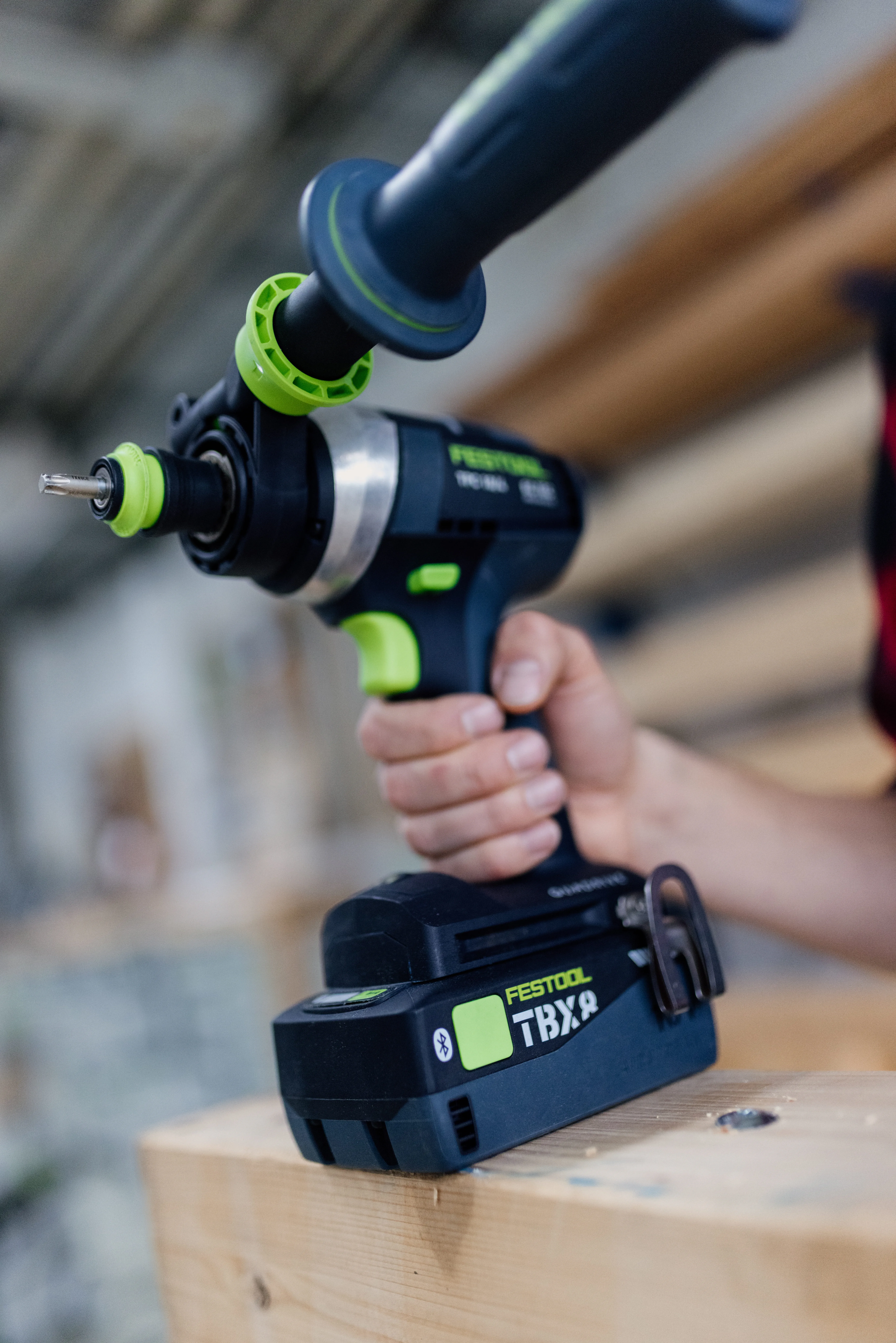 Alexander: Ja und ich muss sagen, das hat richtig Spaß gemacht! Obwohl die Unterschiede zwischen den beiden Akkus größer sind als ich zunächst gedacht habe. Was nicht nur an der gefühlten Leistungsabgabe liegt, sondern auch daran, wie gut sie zu den verschiedenen Maschinentypen passen. Während die Säbelsäge und die Handkreissäge und auch der Akku-Hobel am besten mit dem großen TBX 8 am besten funktionieren, hatte ich beim Schrauben lieber den kleineren und kompakteren TBX 4 an der Maschine. Was auch Sinn macht: Der große Akku stellt die großen Leistungsmengen und Kapazitäten bei den energieintensiven Anwendungen bereit und die Maschine ruft sie entsprechend ab und bei weniger intensiven Anwendungen reicht der kleinere TBX4 locker aus und spielt gleichzeitig seinen Handling- und Gewichtsvorteil aus.