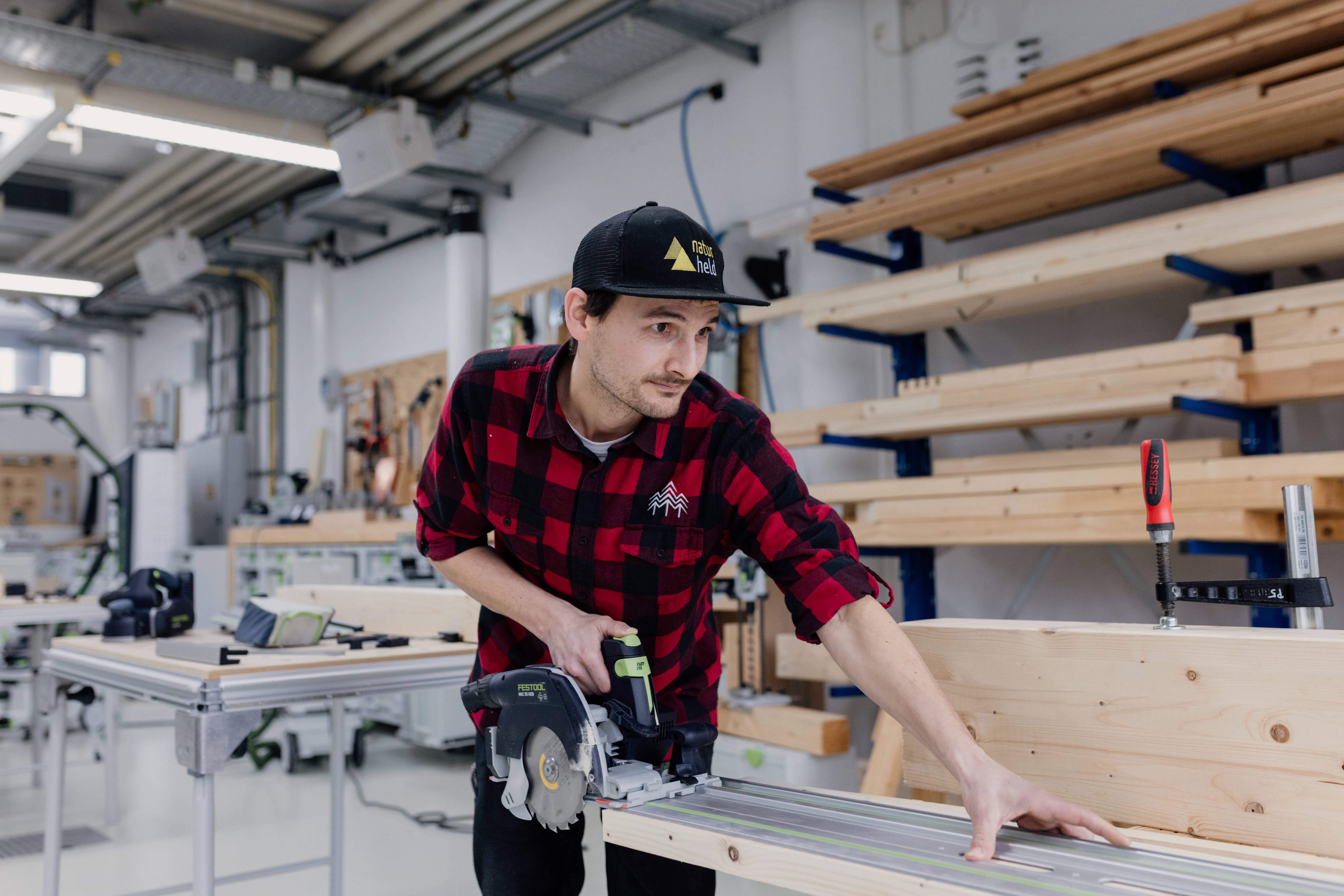 Alexander: Vor allem beim Sägen, Hobeln und beim Arbeiten mit großen Schrauben und vor allem mit der großen Säbelsäge war der Unterschied deutlich spürbar! Man kommt mit der Handkreissäge auch bei dickeren Balken einfach sehr schnell durch das Material. Die Widerstände beim Sägen verringern sich drastisch. Und dass, obwohl wir „nur“ das Universalsägeblatt verwendet haben. Beim Schrauben das gleiche: Man spürt ab der ersten Sekunde: Da ist richtig Dampf drauf – aber niemals zu viel. Die Kraftentfaltung bleibt harmonisch wie gewohnt, wenn man aufs grüne Gaspedal drückt und lässt sich weiterhin präzise dosieren. Aber die Leistung steigt auf ein spürbar höheres Niveau und bleibt dann auch konstant bestehen. Das ist für unsere Anwendungen echt ein enormer Mehrwert!