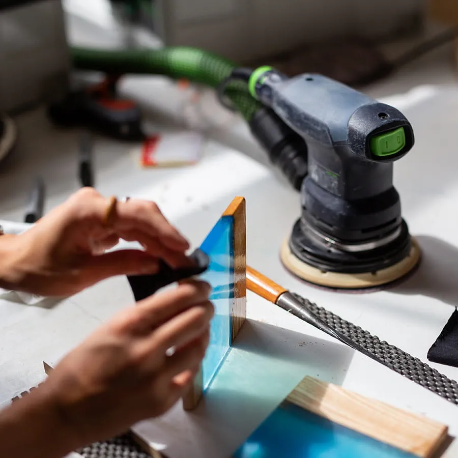Richard arbeitet auch weiterhin in seiner Werkstatt mit Festool Werkzeugen und der dazugehörigen Staubabsaugung: "Ich stelle für alle Workshopteilnehmer eine Ausstattung von Festool zusammen", erklärt er. Besonders die Staubabsaugung ist als Schutz vor Stäuben und Holzspänen ein wichtiges Element seiner Werkstatt.