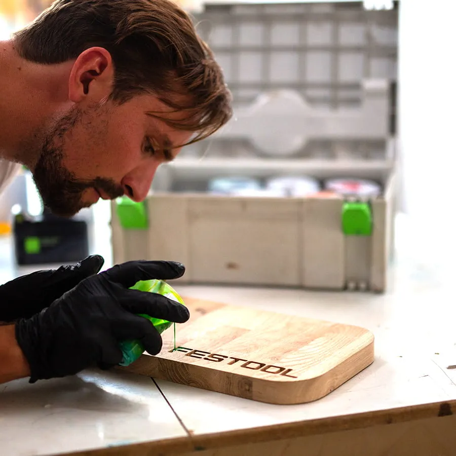 Den Leuten die Grundlagen beizubringen, gibt ihnen die Möglichkeit, kreativ zu sein - das ist es, was Richard am meisten Spaß macht. Das Unterrichten, sein eigener Chef zu sein und die Organisation von Festool bieten Richard eine perfekte Work-Life-Balance.