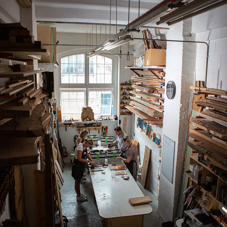 “Ich habe vor etwa 16 Jahren mit der Holzbearbeitung begonnen und bin schließlich in Woolwich gelandet, wo ich vor vier oder fünf Jahren mit der Leitung der Workshops begann”.