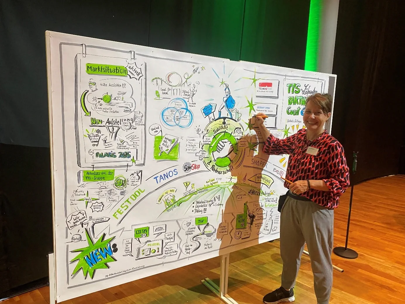 Ein weiteres Highlight war die Grafik, die Britta Krondorf während der Veranstaltung mit den präsentierten Inhalten erstellte (siehe auch Foto).
