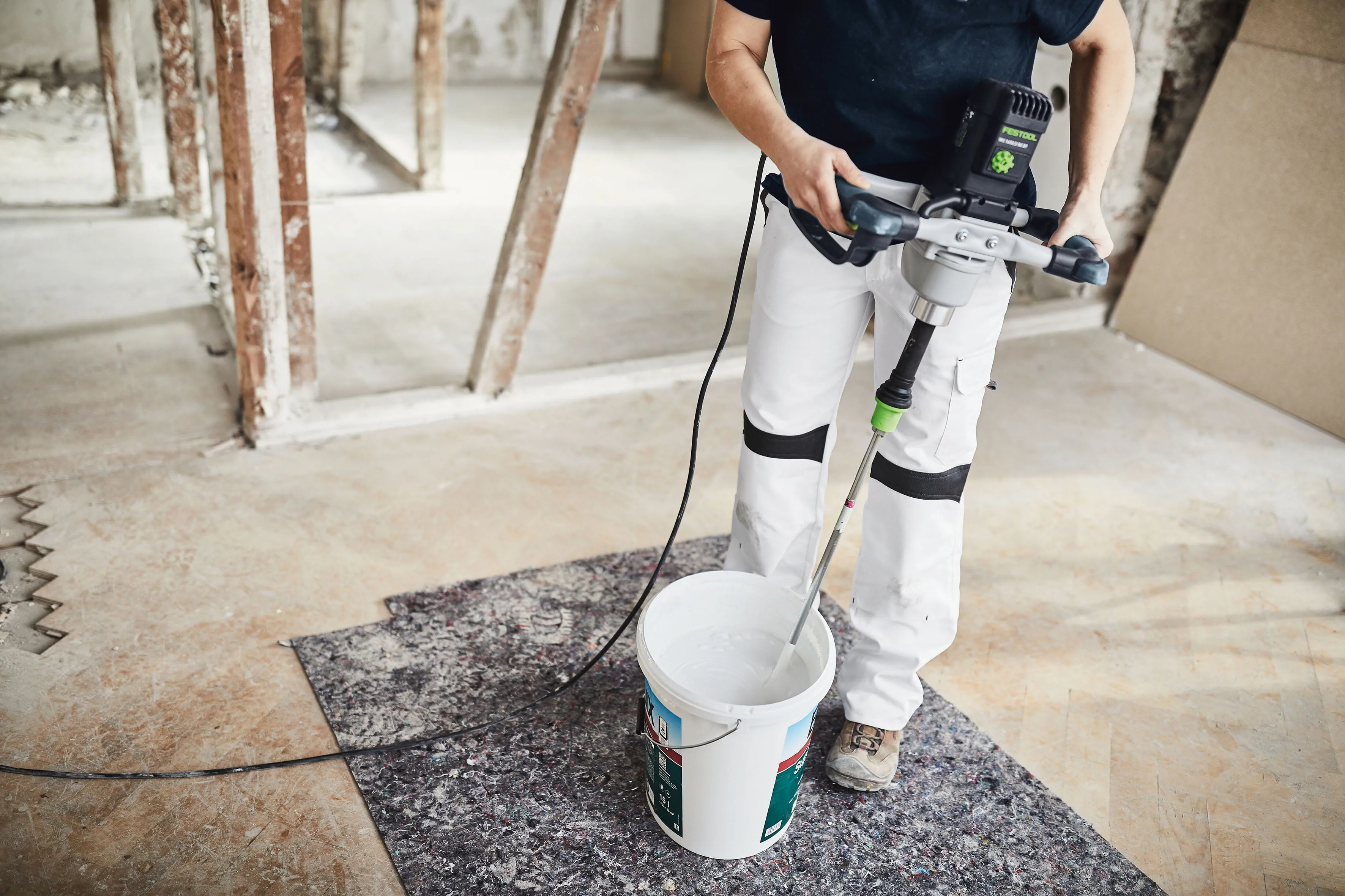 Bei der Vielzahl der vermischenden Materialen – sowohl in flüssiger als auch in kompakter Form - empfiehlt Festool für leichtes und mittleres Mischgut ein Rührwerk mit mindestens 1.200 Watt Leistung mit Zweigang-Getriebe mit variabler Drehzahleinstellung. „Neben der Drehzahlregelung lassen sich unsere Rührwerke durch die patentierte ErgoFix Höhenverstellung individuell und ganz einfach an die jeweilige Körpergröße anpassen. Dies ermöglicht eine natürliche, aufrechte und kräfteschonende Arbeitsposition. Gleichzeitig dient der ErgoFix-Adapter mit seiner klassischen M14-Aufnahme dem schnellen und werkzeuglosen Wechsel von Rührstäben – die sogenannte FastFix Funktion“, führt Stahl aus. Schwere, kompakte Materialien sollten im ersten Gang gerührt werden, da hier aufgrund des hohen Drehmoments die höchste Kraft zum Rühren bereitsteht. Flüssige Materialien sollten indes im zweiten Gang mit angepasster Drehzahl (s. Herstellerangaben) gemischt werden. Steht ein Rührwerk mit zu geringer Wattzahl zur Verfügung, wird es sehr mühsam, das Material optimal durchzumischen, da die fehlende Leistung meist durch körperlichen Einsatz ausgeglichen werden muss. Abschließend lässt sich sagen, dass Maler durch richtiges Mischen das gewünschte Arbeitsergebnis erzielen sowie unnötigen Ärger und die damit verbundene teure Nacharbeit vermeiden.