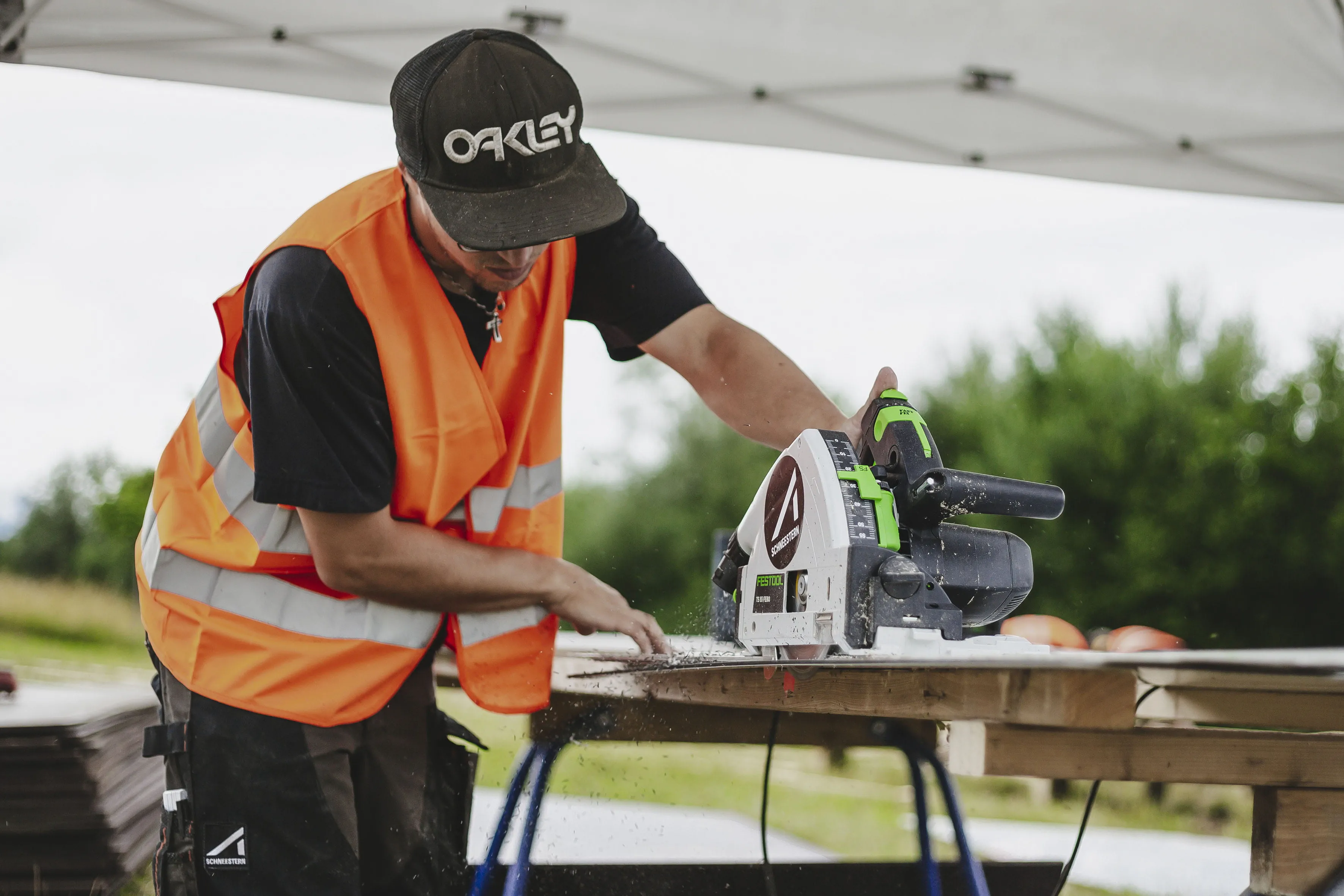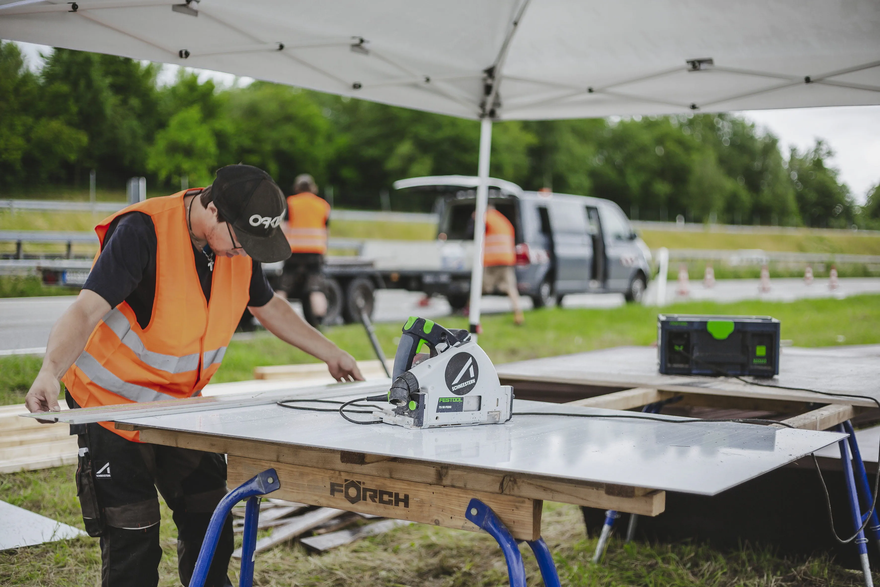 Das richtige Werkzeug hat den Vollblut-Handwerkern dabei geholfen. Akku-Kreissägen und Akku-Schrauber von Festool waren genauso im Einsatz wie die neue SYS-PowerStation. Denn dort, wo keine Steckdose und kein Strom ist, aber jede Menge Saft benötigt wird, hilft sie mit ihrer Akkuleistung. Wie gut das funktioniert hat, erklärt Ahrens: „Wir haben eine normale Kreissäge einen Tag lang mit der SYS-PowerStation betrieben. Das war das perfekte Hilfsmittel für diese Gelegenheit. Sie hat für den kompletten Einsatz gereicht.“ Profis für Profis waren somit bei der Allgäuer „Tri-Battle Royale“ am Werk. Doch nicht nur die Hauptakteure, sondern auch die Zuschauer waren begeistert. „Es wird immer noch drüber gesprochen“, sagt Vanessa Zeller – verantwortlich für Marketing und Design bei Schneestern. Dass man das Unternehmen im Allgäu kennt, sei zwar klar. Doch selbst in großen deutschen Sportkanälen sei die Steilwand lange Thema gewesen, auch wenn dieses Projekt etwas vollkommen anderes war als das, was die Profi-Handwerker bislang mit Pumptrack-, Skate- oder Snowparks auf die Beine gestellt hatten.