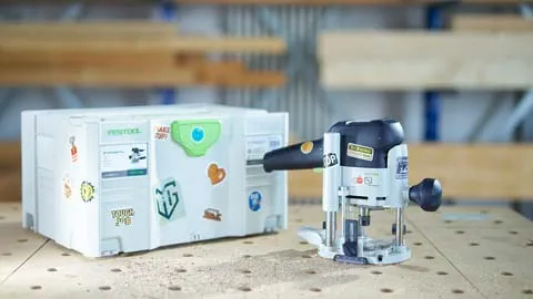 Eine Oberfräse von Festool passt perfekt ins System. Führungsschiene, Fräsersystem, Multifrässchablonen, Lochreihensystem, Verbindungssystem und Festool Absaugmobile machen die Arbeit mit einer Festool Oberfräse noch effizienter.