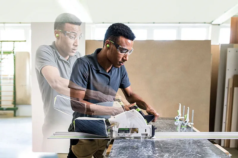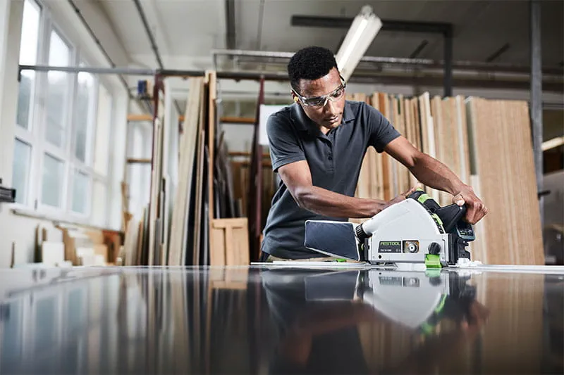 Für universelle Arbeiten ist die Verstellung des Schnittwinkels ein wichtiges Kriterium bei der Entscheidungsfindung für eine Säge. Denn bei vielen Werkstücken ist es nicht damit getan, einen geraden Schnitt im 90°-Winkel auszuführen: Insbesondere Gehrungsschnitte, etwa bei Anpassarbeiten auf Montage benötigen exakte Einstellmöglichkeiten beim Schnittwinkel.Festool Tauchsägen bieten Ihnen die benötigte Flexibilität. Je nach Modell sind Schnittwinkel zwischen -1° bis 47° möglich. Diese Eigenschaft ermöglicht bei den entsprechenden Sägen auch den Hinterschnitt. Eine wichtige Funktion bei vielen Arbeiten, die millimetergenau ausgeführt werden müssen.