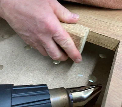 Ist kein Kantenanleimer greifbar, oder der Ausschnitt dafür zu klein, können auch Bügelkanten eingesetzt werden.