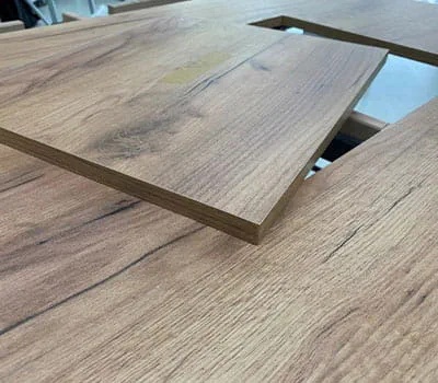 - Tisch/Tischplatte z.B. furnierte Spanplatte (zusätzlich Kantenmaterial/muss bekantet werden)