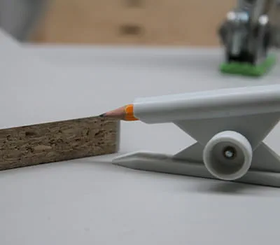 Hilfreich für die Übertragung der Wandkontur ist ein sogenannter Parallelanreißer, welcher auf die Materialstärke der Schrankseite eingestellt wird.
