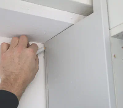 Das Ergebnis ist eine perfekt eingepasste Passleiste. Mit der richtigen Technik ist das Einpassen einer Passleiste also unkompliziert und der Einbauschrank erhält einen sauberen Wandabschluss.