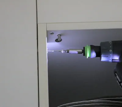 Bei einer zurückgesetzten Passleiste kann diese anschließend einfach durch die Schrankseite von innen verschraubt werden. Alternativ können spezielle Clips oder Montageleisten eingesetzt werden.
