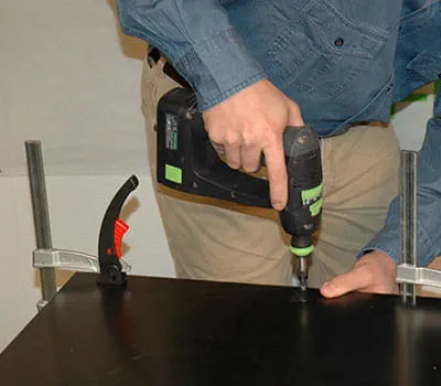 Nachdem die Rahmen der Unterkonstruktion verschraubt sind, legen Sie die inneren Verkleidungen (Pos. 2,7,13) auf. Die Platten mit Zwingen fixieren und die Löcher für die Schrauben bohren. Verschrauben Sie die Platten mit Spax (3,5 x 20 mm) auf der Unterkonstruktion.